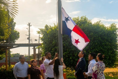 La actividad inició con la izada del Pabellón Nacional, a