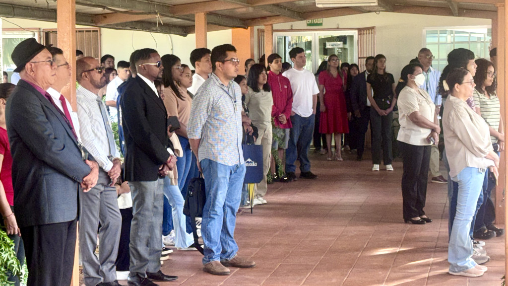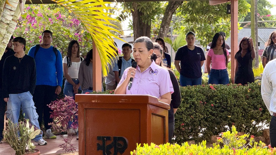 La actividad inició con la izada del Pabellón Nacional, a cargo de los estudiantes del Capítulo de Honor Alejandra Pérez, de la Licenciatura en Comunicación Ejecutiva Bilingüe de la Facultad de Ciencias y Tecnología (FCyT) y Albin Borbua, de la Licenciatura en Ciberseguridad de la Facultad de Ingeniería de Sistemas Computacionales (FISC), y el juramento estuvo a cargo del estudiante Kevin Rudas de la Licenciatura en Ing. en Sistemas y Computación.