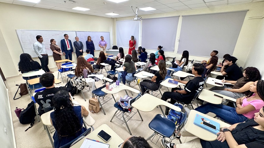 Luego del acto protocolar de inicio de semestre 2026, la Dra. de Meier, en compañía de la Mgtr. Itzel Loo, la subdirectora Académica; el subdirector Administrativo Ing. Carlos García; el Ing. Matzel Montes, subdirector de Investigación, Postgrado y Extensión y la Dra. Marta Moreno, subdirectora de Vida Universitaria, realizaron un recorrido por las aulas de clases dándole la bienvenida a los estudiantes de primer ingreso a quienes exhortó a cuidar las instalaciones y equipos que se encuentran en esta Casa de Estudios y aprovechar al máximo la enseñanza que se le brinda en esta institución que será de provecho en sus carreras profesionales.