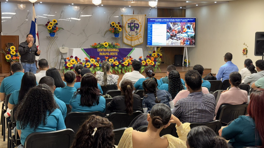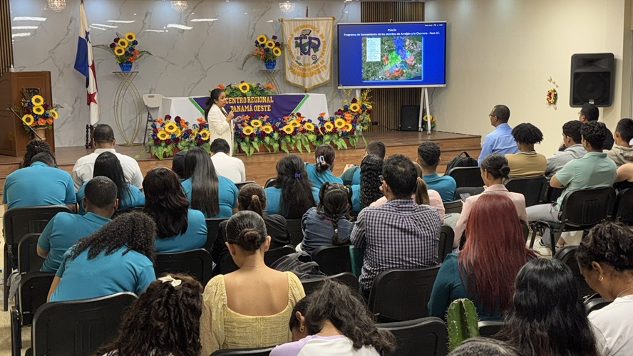 Los estudiantes de quinto año de la carrera de Ingeniería Industrial y de cuarto año de la carrera de Mercadeo y Negocios Internacionales de la Facultad de Ingeniería Industrial (FII), del Centro Regional de Panamá Oeste de la Universidad Tecnológica de Panamá (UTP), participaron de conferencias dictadas por expertos con el tema “Saneamiento de Panamá Oeste”.