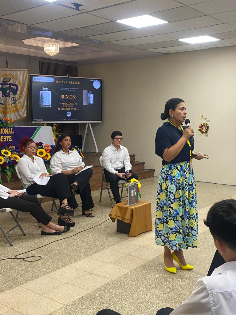 Los estudiantes del grupo 9EB111 de la Licenciatura en Comunicación Ejecutiva Bilingüe, de la Facultad de Ciencias y Tecnología (FCyT) del Centro Regional de Panamá Oeste de la Universidad Tecnológica de Panamá (UTP), en el marco de la Semana del Libro, realizaron un conversatorio sobre la obra Remón: «Ni millones, ni limosnas. Queremos justicia», escrita por la autora panameña Marisin González.